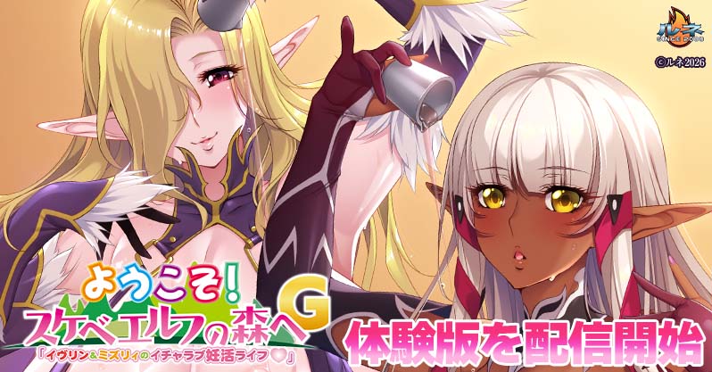 『ようこそ!スケベエルフの森へG「イヴリン&ミズリィのイチャラブ妊活ライフ♡」』の体験版を配信!
